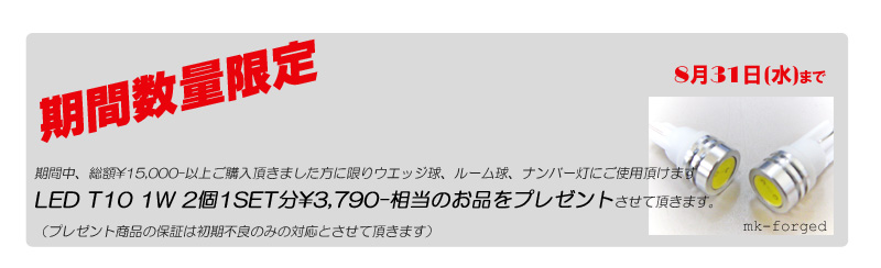 総額¥15,000−以上ご購入の方にもれなくLED T10をプレセントさせて頂きます。